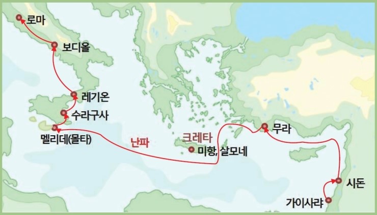 멜리데 섬에서 겨울을 지내고 로마에 도착한 바울은 로마 교회 형제들의 따뜻한 환대를 받습니다.